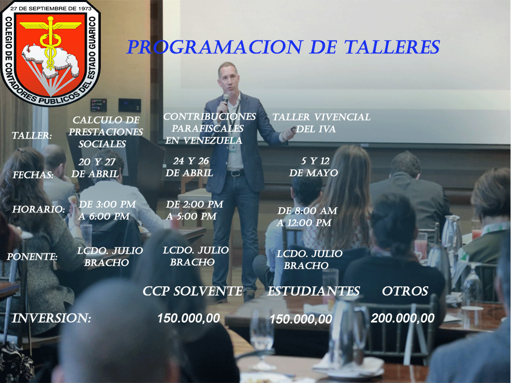 Con el fin de dar continuidad a la capacitación constante, el CCP Guárico pone a disposición de los agremiados la programación de talleres puntuales para el desarrollo de los mismos, se les recuerda a todos los usuarios enviar información de las transferencias a través de los distintos correos electrónicos dispuestos para tal fin los cuales son: